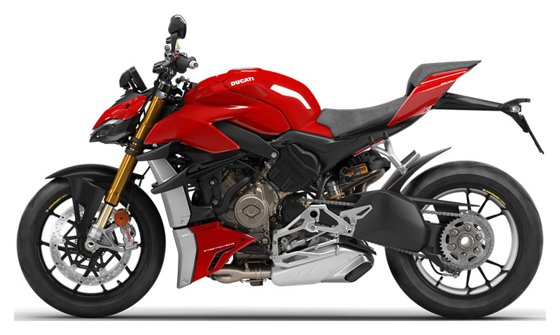 • Ergonomics, more comfort, more control: Compared to the Panigale V4, the riding position - with an above-ground height of 845 mm - has been redefined as per the specifications of a naked model. In keeping with streetfighter culture, the semi-handlebars have been replaced by a high, wide bar that, together with a seat with 60 mm of foam thikness and moderated footpeg position, ensures sports-style comfort during inner city rides and the control needed to tackle country roads or racetracks. While maintaining many of the Panigale's stylistic features, the tail is supported by a steel subframe and has been redesigned to enhance passenger comfort and give the rider more lengthways space.